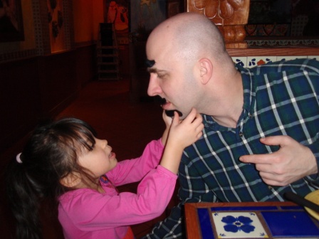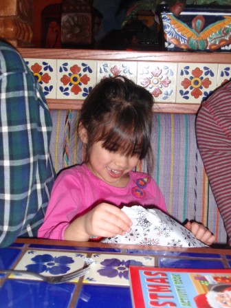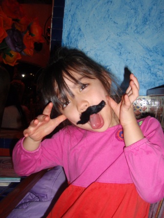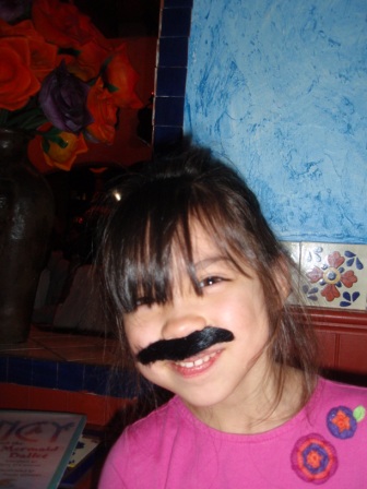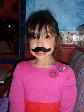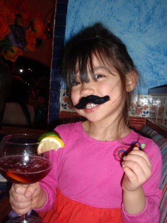 Margarita's. Perhaps because it was a Saturday night, but the restaurant handed out free mustaches, which Aurora had