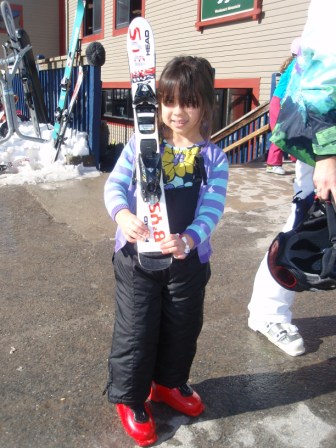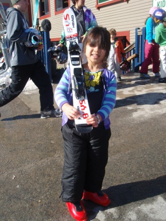 Aurora's excited to try skiing for the first time! After lunch, we took her for a few hours at Nashoba Valley.