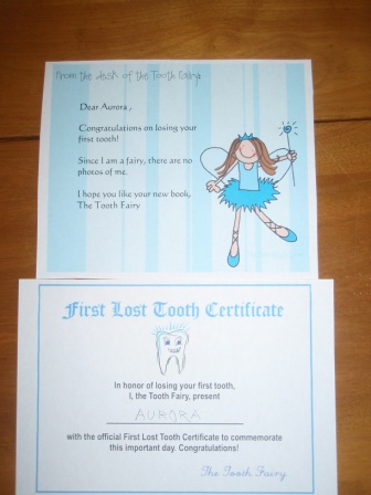 March 30, 2013: The Tooth Fairy finally visited Aurora the night before. In addition to taking her tooth,