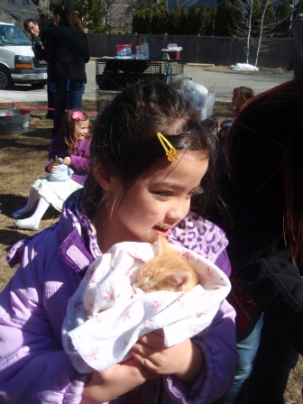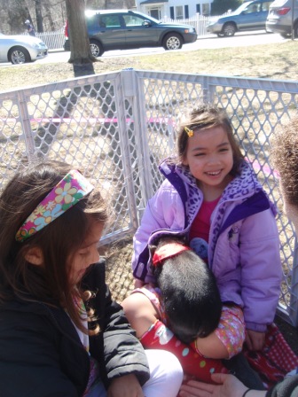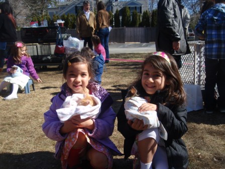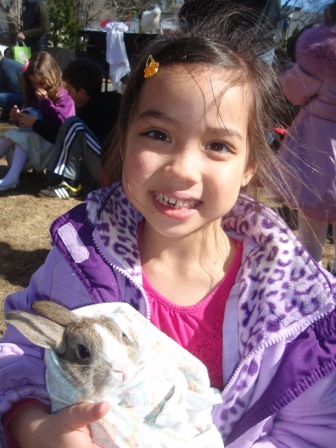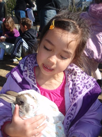addition to decorating an Easter bag and an Egg Hunt, there was a baby animal petting zoo. Aurora knew how to handle the