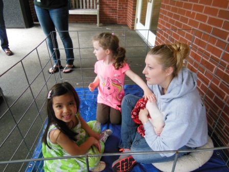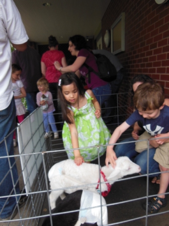 snacks and some bouncing (we brought our bouncy house), then moved outside for baby animals. Aurora demonstrated how