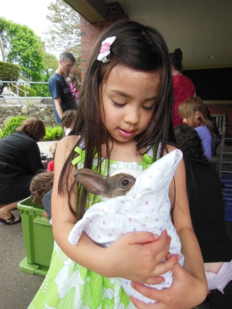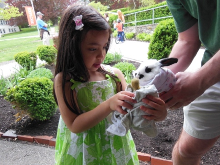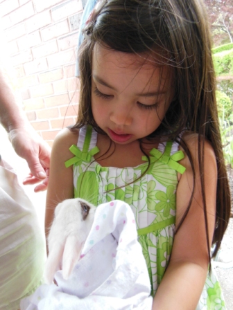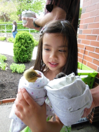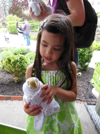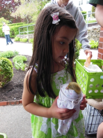 careful and loving she can be with the little bunnies, chicks, kittens, ducklings, pig, goats, and a puppy.