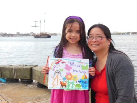 May 12, 2013: There was a family event and fundraiser for the One Fund Boston at Fan Pier. Aurora enjoyed all the crafts