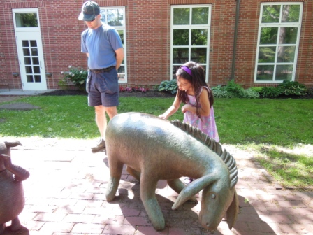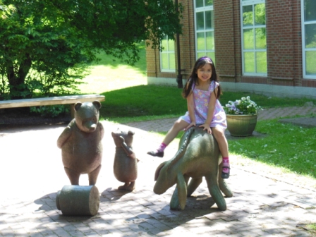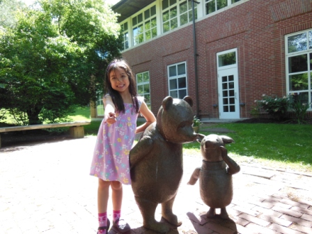 May 27, 2013: Checking out the new Piglet statue at the library.