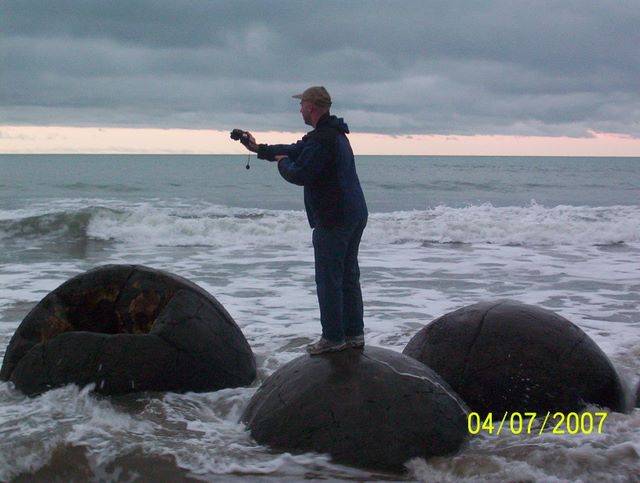 New Zealand -- Jon trying to get a shot of what inside a boulder looks like.