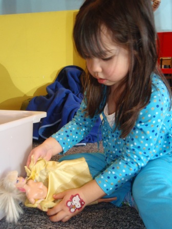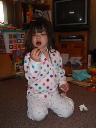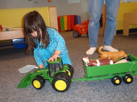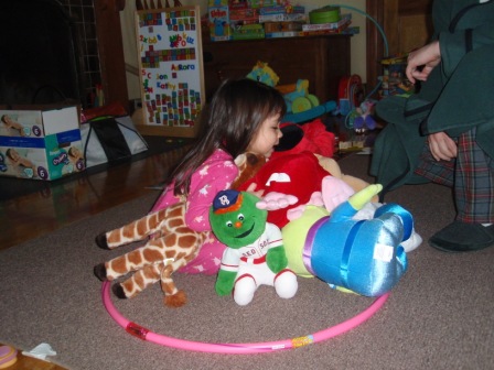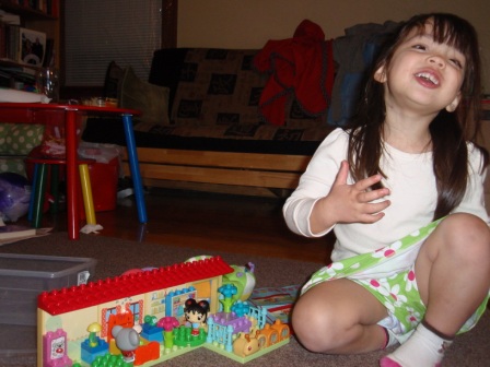April 10, 2011: Aurora likes her Kai Lan playset, but often needs help putting it together