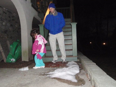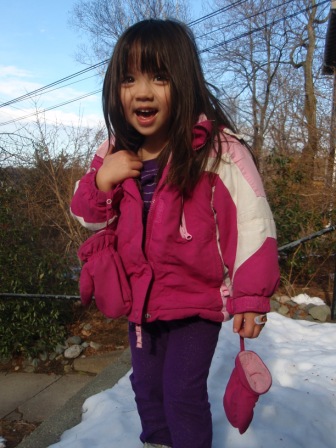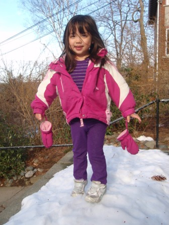 Aurora enjoys the last of the giant snow pile by the front porch.