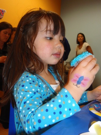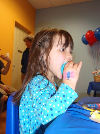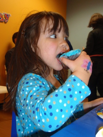 Aurora enjoys the frosting, and leaves the cupcake for Mama and Baba to eat.