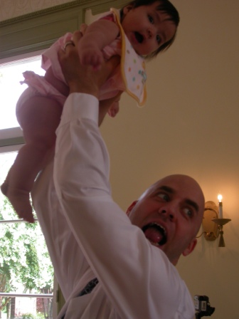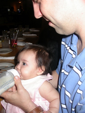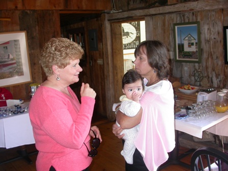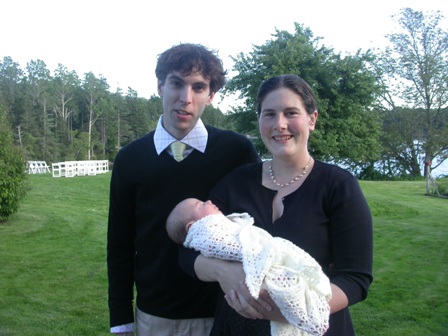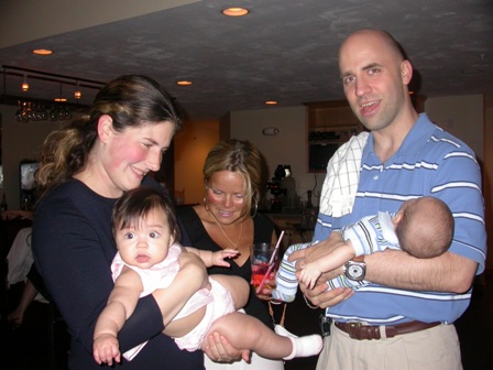 Corin and Jon do the baby exchange. At 2 months and 10 pounds, Oliver sure was tiny compared to our hefty baby!