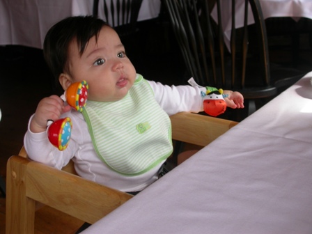 Trying out the high chair for the first time (thanks Andy and Rebecca!)