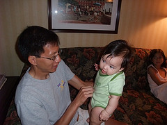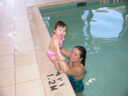 Trying out the hotel pool. At first Aurora was excited, but once she was in the cool water, she seemed to wonder what her parents were thinking!