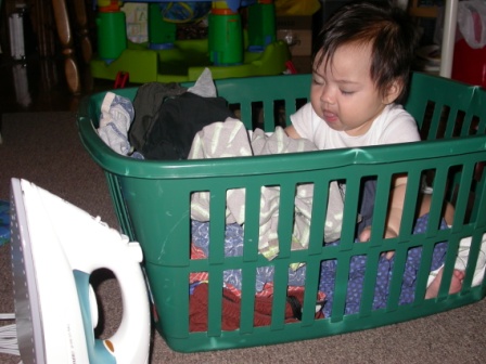 August 5: Aurora is now used to helping Mama fold the laundry. Maybe she can learn to iron next!