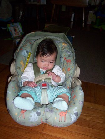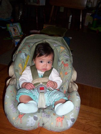August 12: Heading to day care for the first time. Looks like Aurora is trying to break out of her car seat!