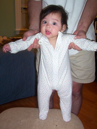 but didn't have enough control over them to push up onto her knees. She continued to use the sides of her crib as