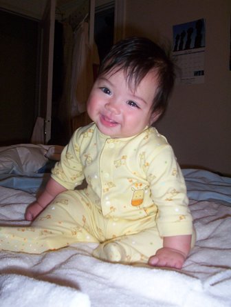 August 14: Aurora is getting much better at sitting and reaching out to grab things that she wants (and getting the
