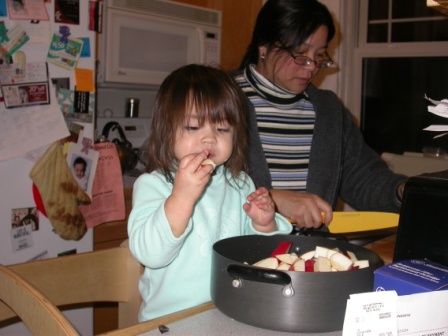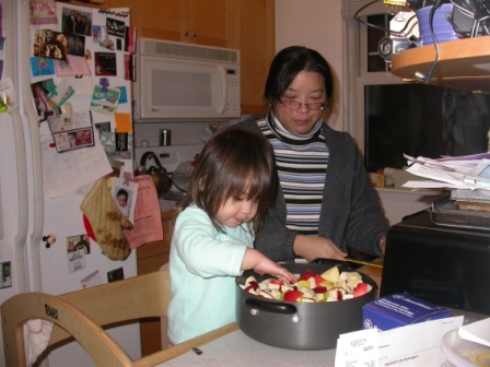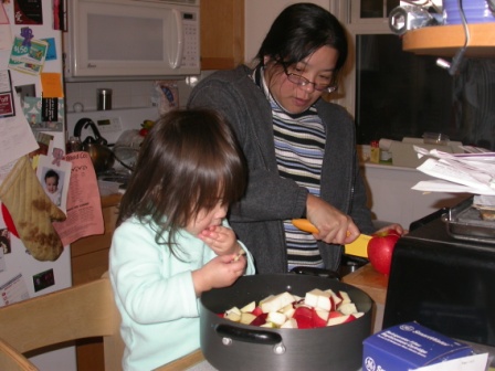 December 12, 2009: Aurora is (finally!) feeling better and helps Kathy prepare apples for applesauce.