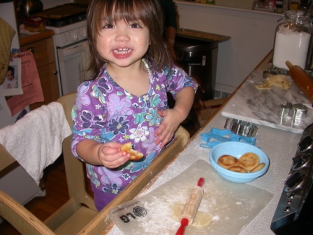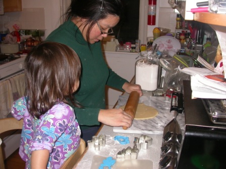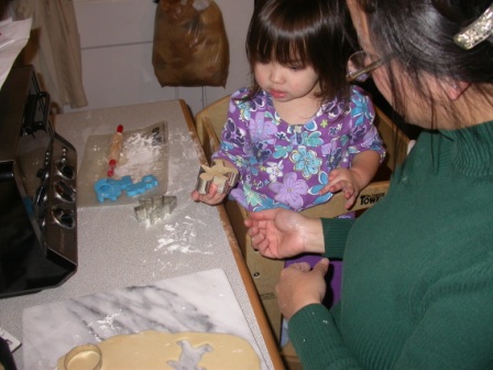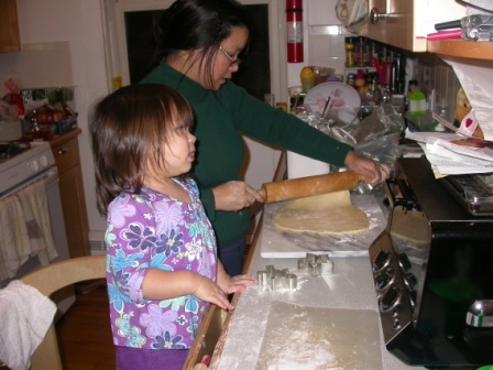 December 15, 2009: Aurora helps Kathy make sugar cookies that evening.