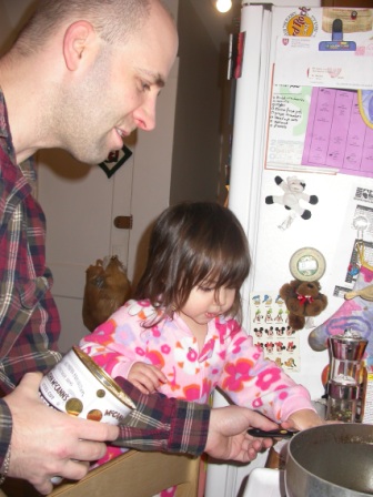 hour to prepare. Here she is helping Jon measure out the oatmeal.