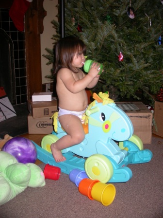 December 22, 2009: Aurora refuses to put on clothes that evening. We are lucky to have