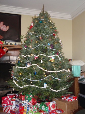 December 25,2009: We had put some ornaments on the tree earlier in the week, but hadn't fully decorated it yet.