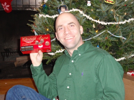 Jon was totally shocked to get dark chocolate covered cherries (not!)