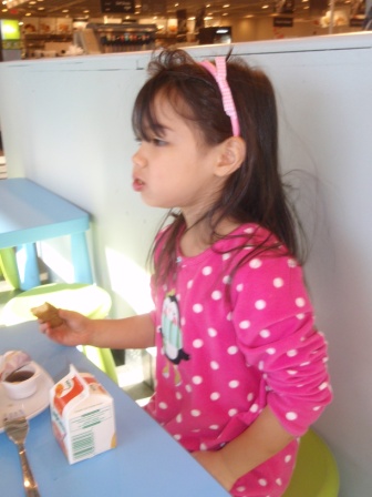 December 23, 2012: We spent the morning in IKEA. Aurora loves having breakfast there (while