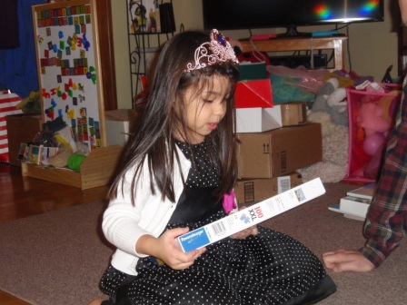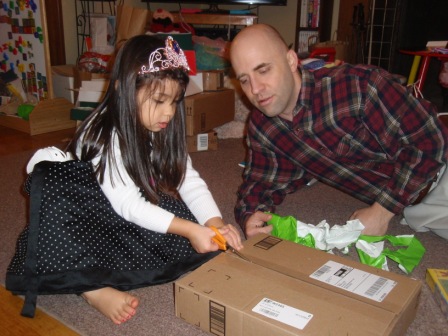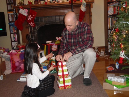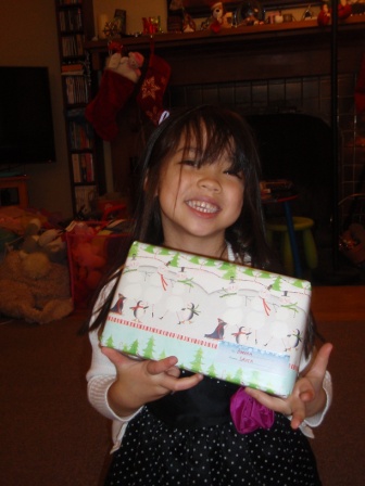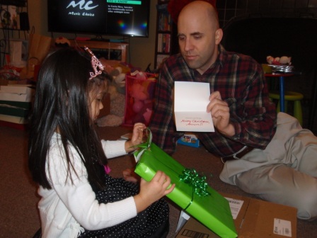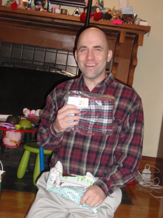 Back to opening presents. Jon finally got to open a few of his gifts. Aurora carefully examined each