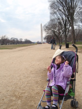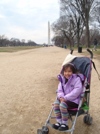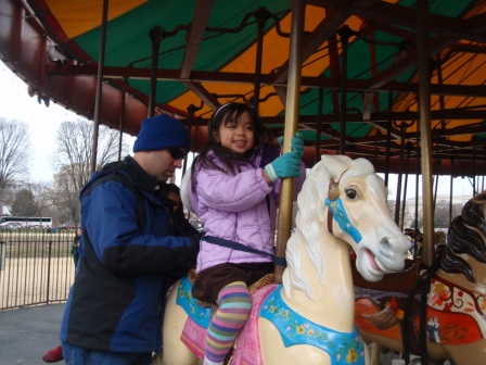 Outside, we saw the Washington Monument. Aurora was more excited to see a carousel.