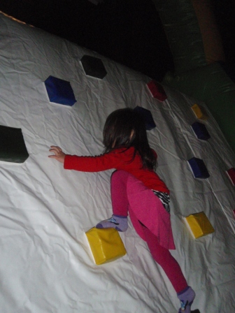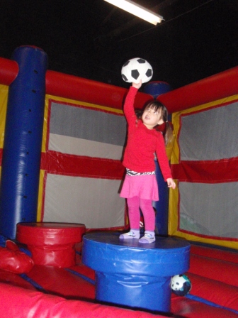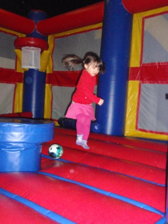 After a bit, she decided to try out the inflatables. Here she is on an obstacle course.