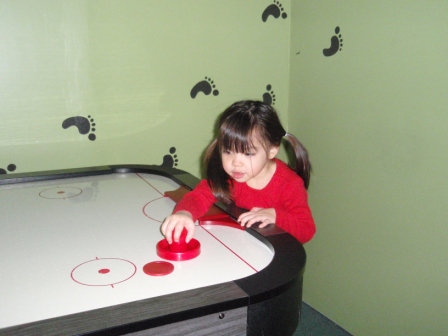 Apparently, Aurora is a natural at air hockey. I love how