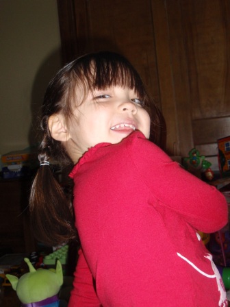 a very playful mood, making funny faces for the camera. She even made fun of herself, trying to suck