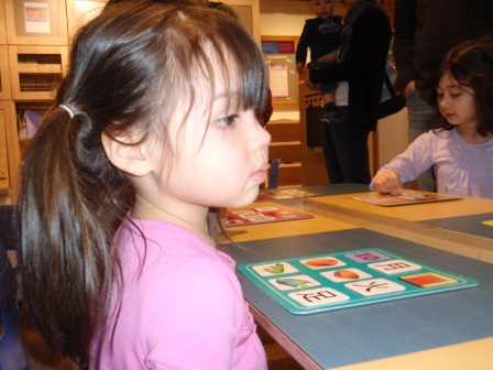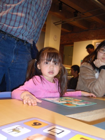 She loves the new exhibit, which is set up like a classroom. Here she is playing Chinese Bingo, and showing
