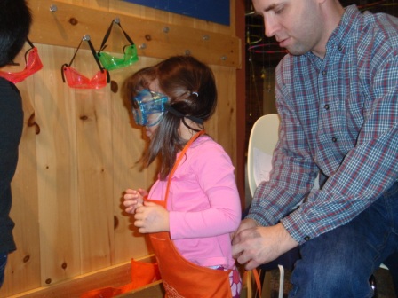 is excited to have an eager apprentice! Kathy just loves how cute Aurora is in her goggles and apron.