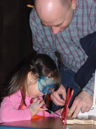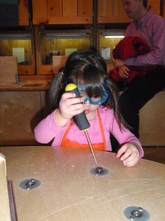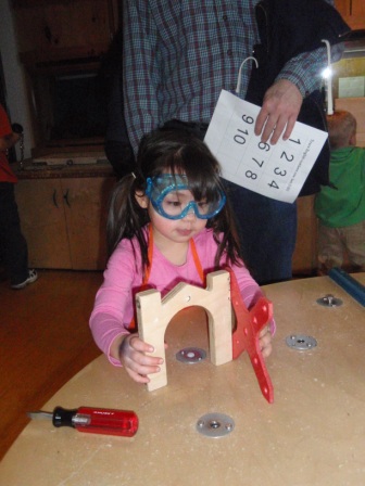 The workshop is a new favortie. Aurora was working very hard to learn how to use a screw driver. She