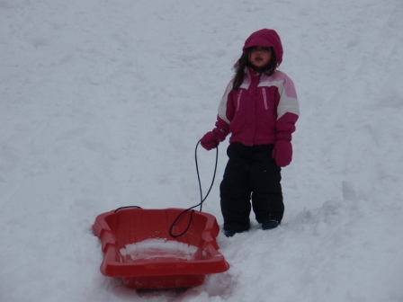 February 27, 2010: Mama had to go to work in the afternoon, so Jon and Aurora went sledding without her. Looks