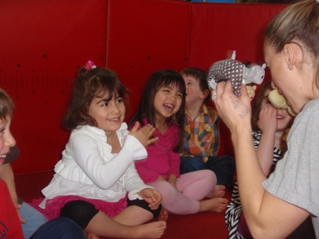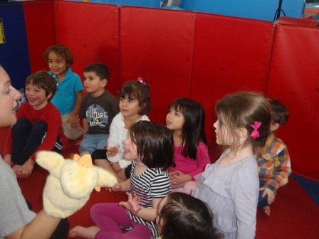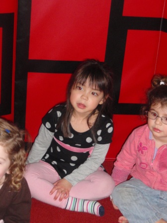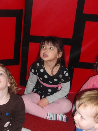 Listening to a story about the 3 little ducks.