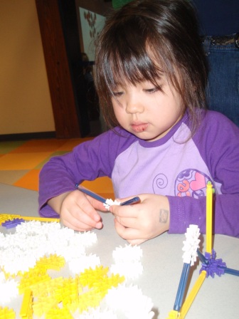 This particular Saturday was an engineering themed day. Aurora tries to make a