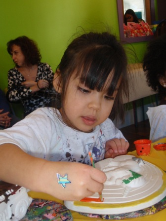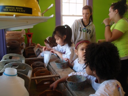Greer's 4th birthday party at The Kids Place. Aurora decorated a plaster plaque and got to mine for gems. She