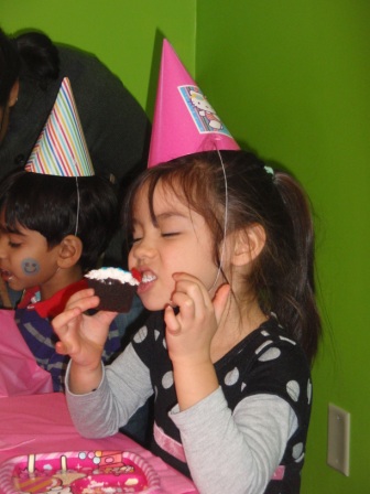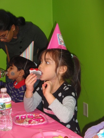 Then it was downstairs for pizza and cupcakes. (Aurora avoided the veggies)