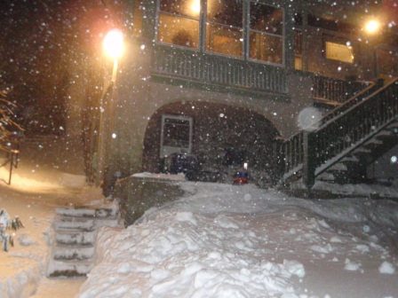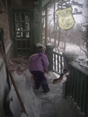 That evening, Kathy went out several times to shovel the walkway a bit. At first, the snow was light and fluffy (easy to shovel),
