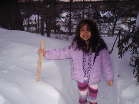 Aurora measures the snow for herself.
