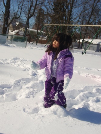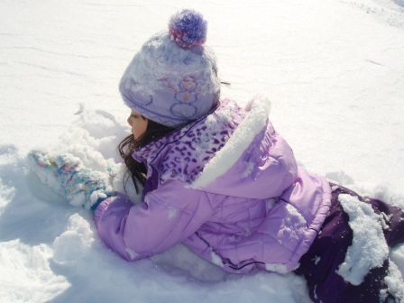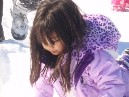 February 10, 2013: Everything is still quite snowy, but Aurora is ready to go sledding! We are invited to