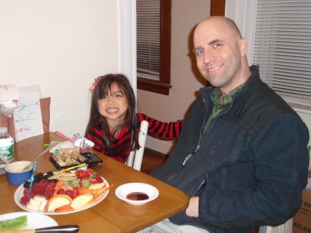 February 14, 2013: Happy Valentine's Day! We enjoy our annual chocolate and cheese fondue dinner.