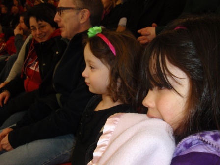 not too much and she stuck it out for the whole game. She even learned to cheer "Go Big Red!"