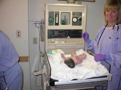 By 6pm, another inspection was done and Kathy was fully dilated. At 6:30pm, the pushing began.
