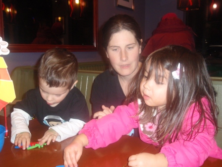 January 11, 2011: Dinner with Corin, Oliver, and Lindsey! The kids start off with MishMashes and move