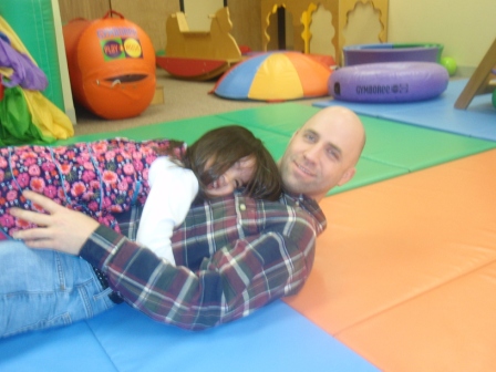 January 15, 2011: Aurora is glad Baba decided to come back home. She loves to play with him at Gymboree!