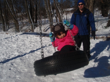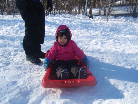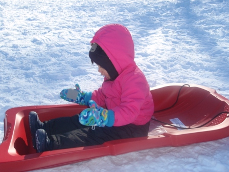 January 17, 2011: Jon and Kathy have the day off, so we took Aurora sledding at the playground. She was so excited