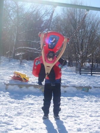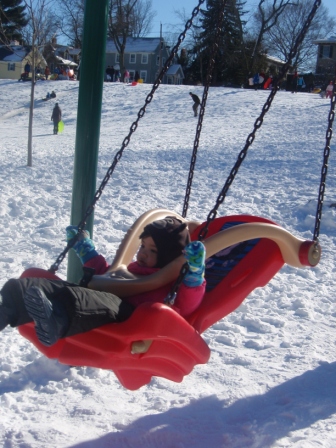 Suddenly she decided she was done sledding and headed off to the playground.