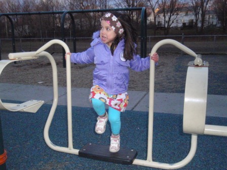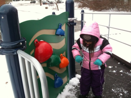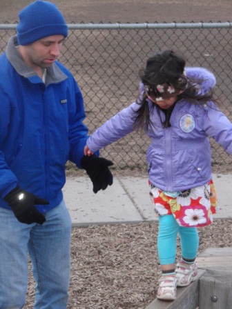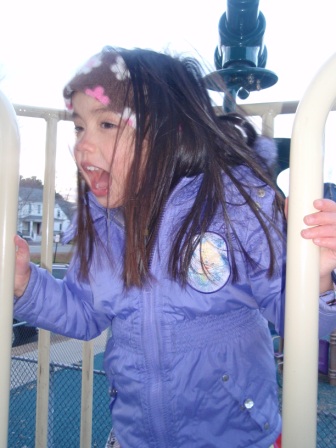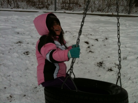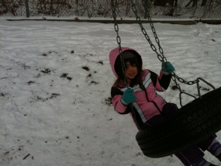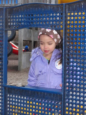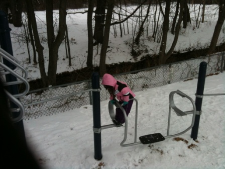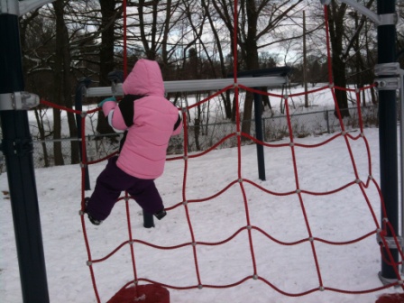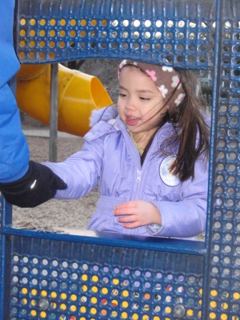 January 8, 2012: Aurora spends quality time at the playground. We are very fortunate to have several